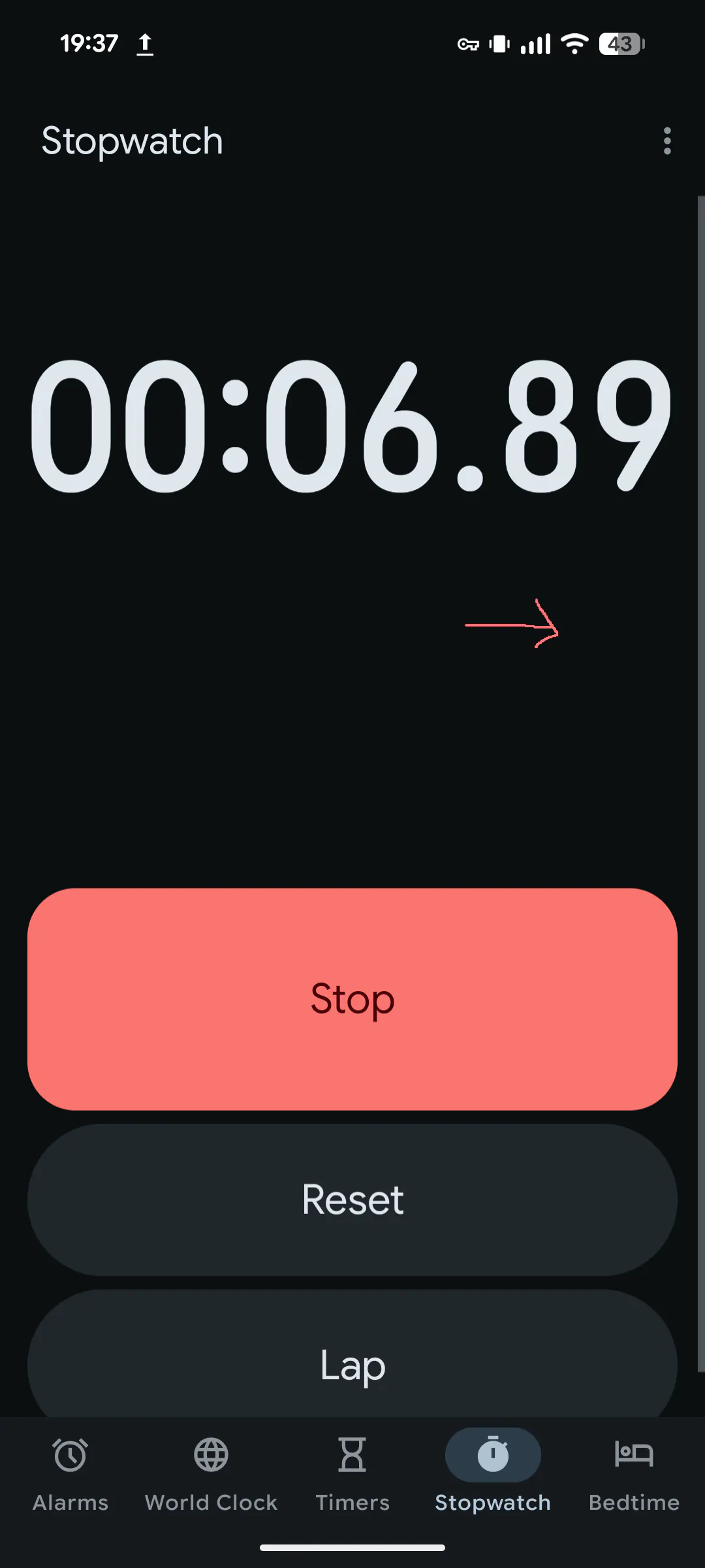 Fun fact, the stopwatch is scrollable even though it shouldn’t need to be. They allocated way too much space for the duration. To make it less expressive, all animations were removed as well.