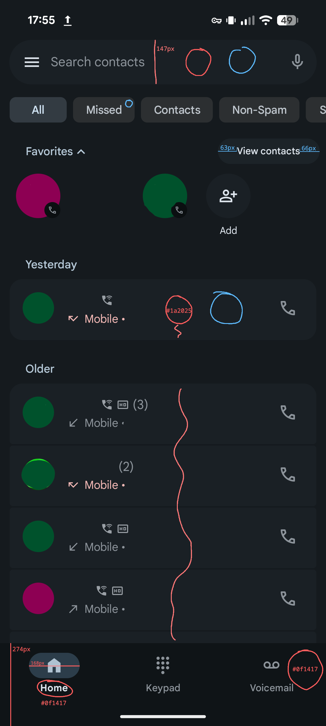 Then I started noticing major inconsistencies between apps. The phone & contacts colors are strangely swapped, some layout margins are completely wrong, padding is off, and some animations are just gone.