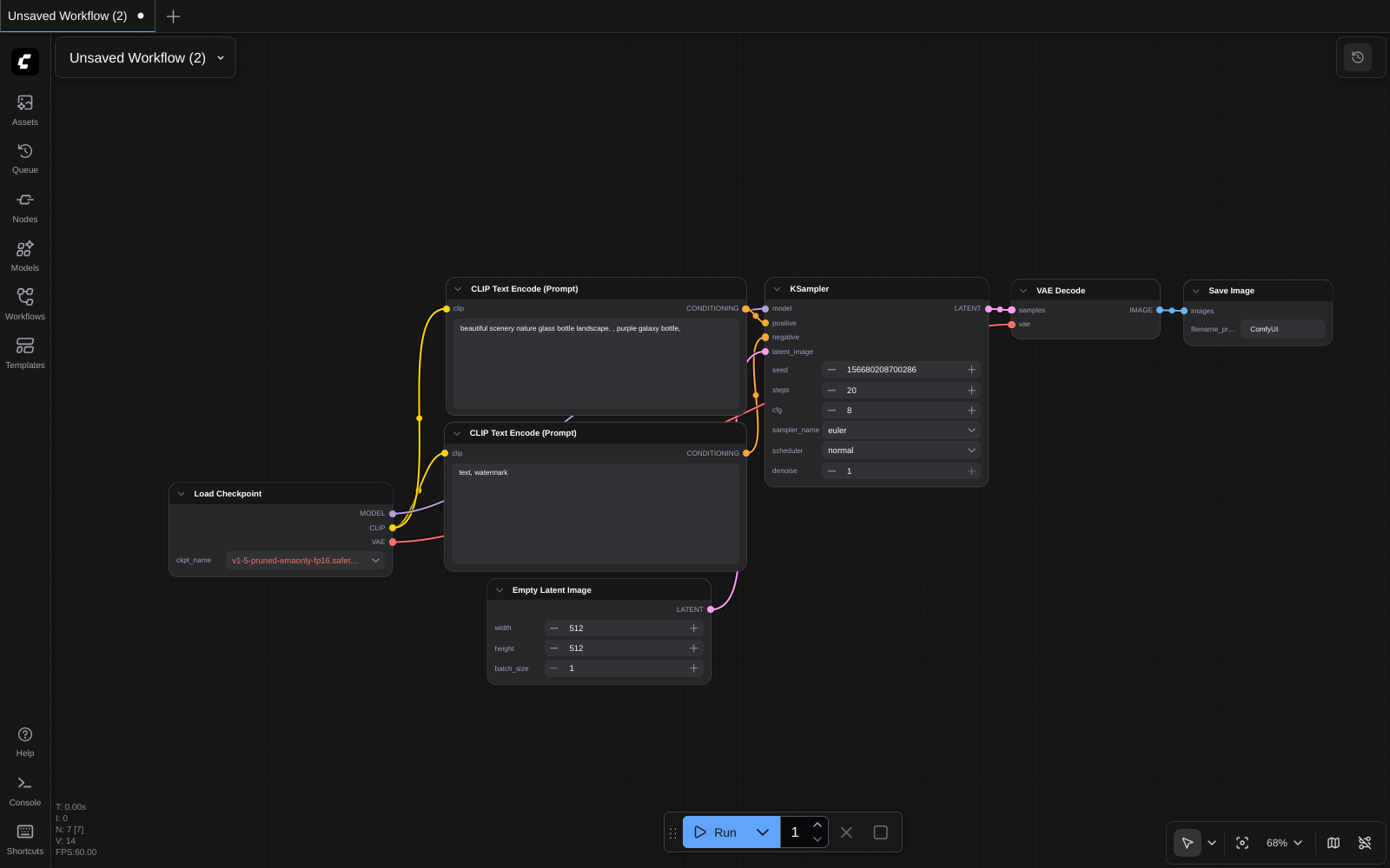 Clicking “Run” will not do anything, since we don’t have any models installed. Let’s try Z Image Turbo!